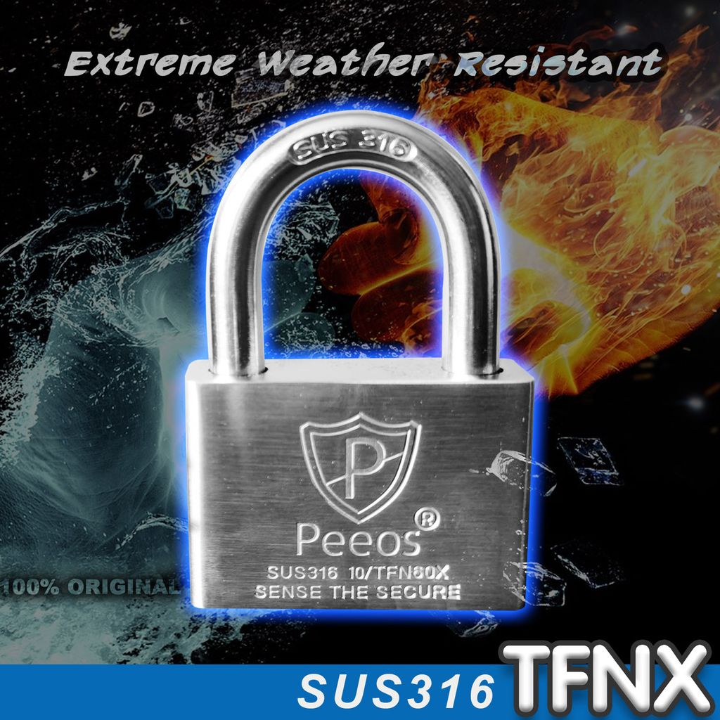 Peeos Security Lock & Key Technology adalah syarikat Malaysia yang mengkhusus dalam pengeluaran pelbagai jenis kunci berkualiti tinggi, termasuklah siri TFNX padlock yang diperbuat daripada keluli tahan karat SUS316. Padlock ini menggunakan teras kunci canggih berbentuk peluru yang menawarkan ciri-ciri keselamatan tambahan seperti tahan gerudi, kunci anti salinan, dan anti alat pemecah kunci.